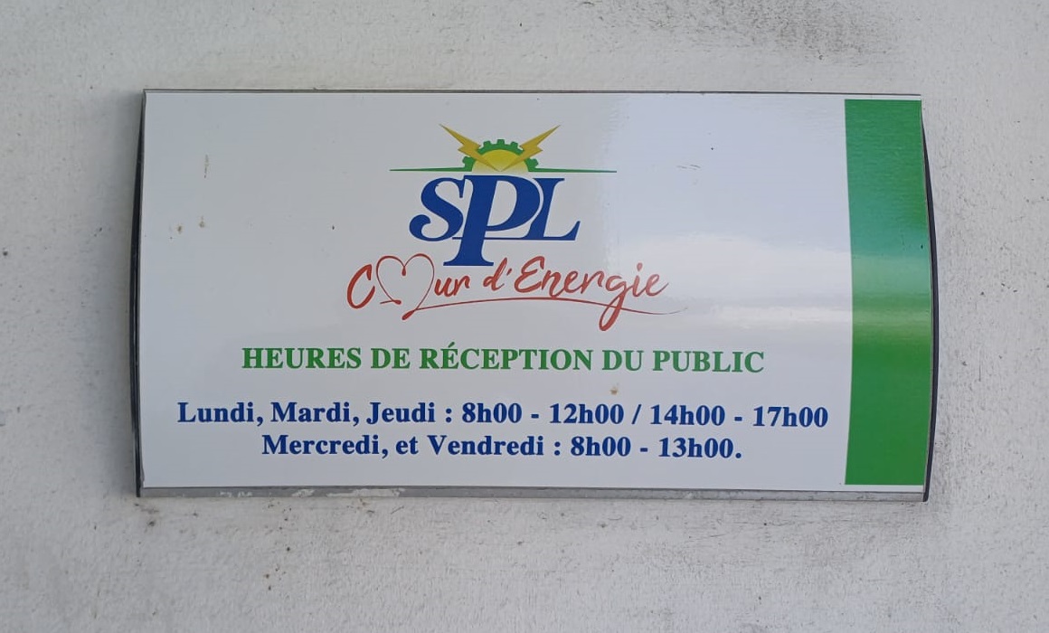 Implanté à Jarry, impasse des palétuviers, le siège de la société est situé dans un immeuble peu visible du public. Au bas de l’escalier qui mène à l’étage figure une plaque qui signale la présence de la SPL (photo ci-dessus). À l’étage, une plaque identique est apposée sur une porte en bois qui indique l’entrée des bureaux. Le fond du palier où s’amoncellent divers bibelots, semble complètement déserté.