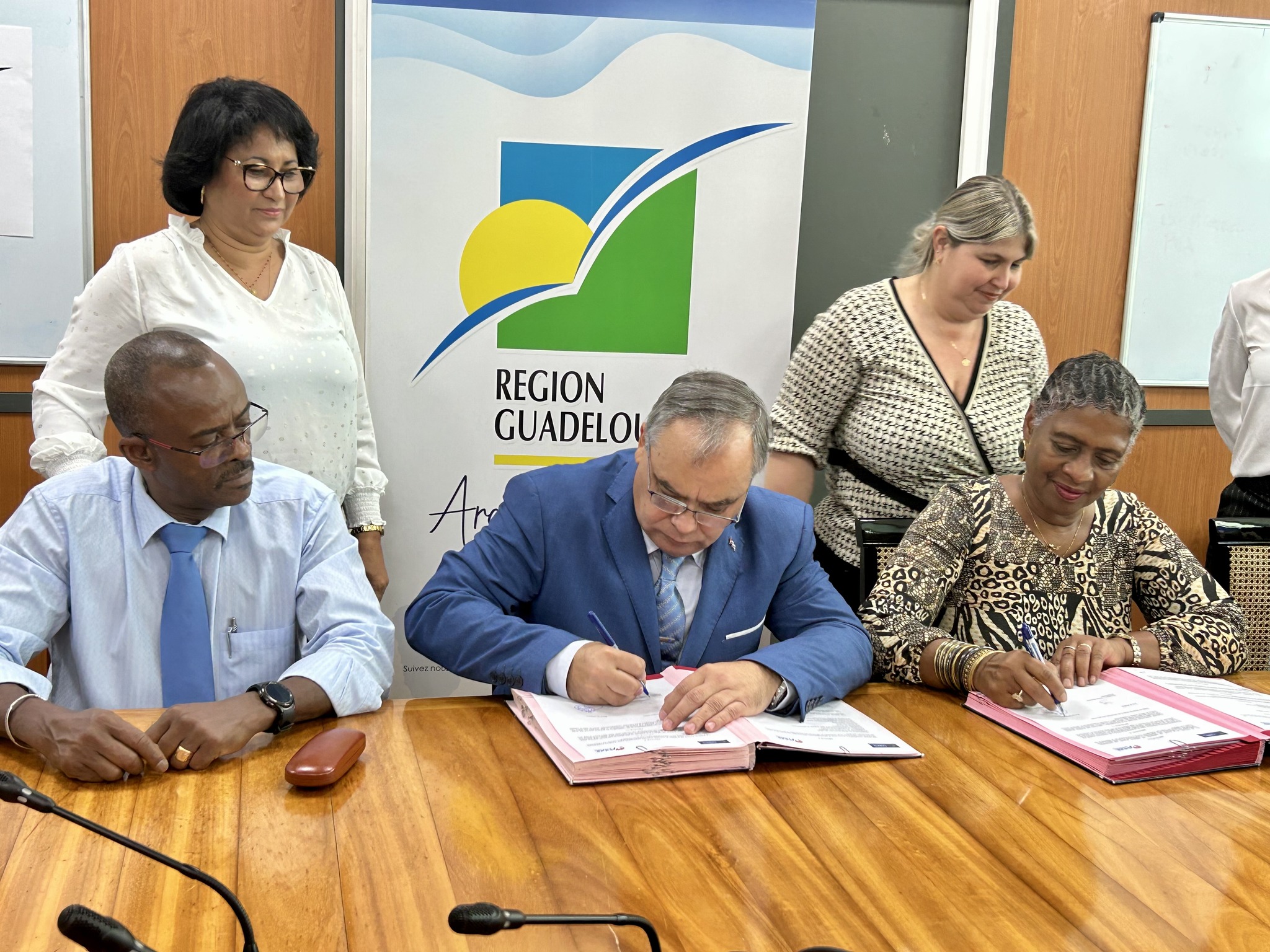 Osvaldo Caridad Vento Montiller n’a pas vu le signe d’un événement significatif dans cette signature de convention qui a mobilisé outre le président de Région Ary Chalus, le directeur de la jeunesse et des sports Marc Lemercier, le conseiller diplomatique du préfet Luc Hallade, le président de la commission sport du conseil régional Camille Élisabeth, le vice-président en Région Eddy Chateaubon ainsi que Chantal Cusset-Gaydu directrice du Creps de Pointe-à-Pitre.