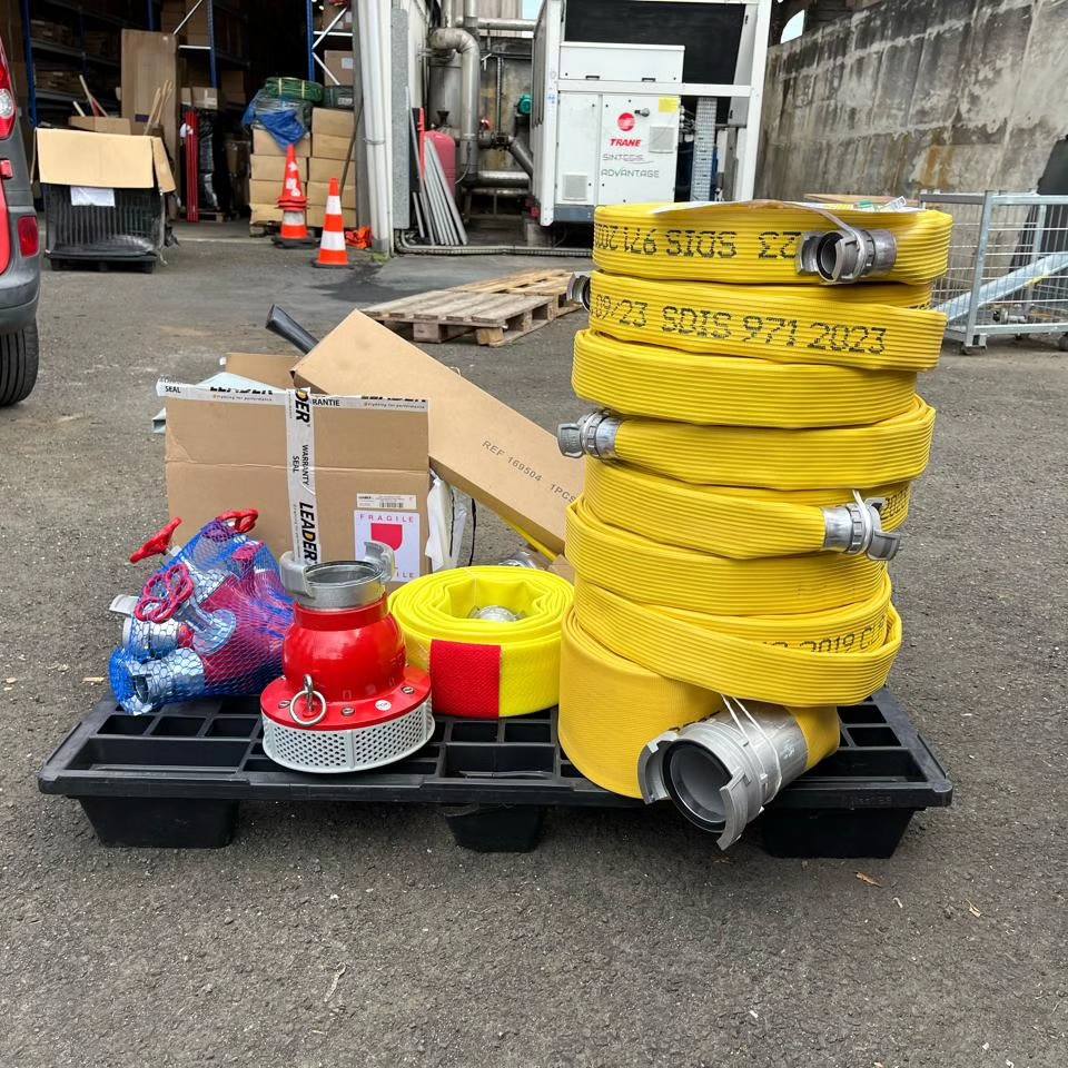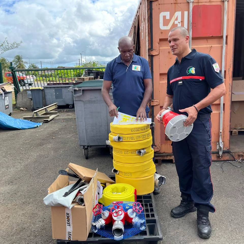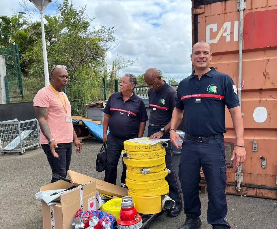 Le SDIS de la Guadeloupe déballe ce 11 mars les nouveaux petits matériels incendie destinés à tous les centres de secours de la région. Photo : FB SDIS Guadeloupe Sdis971