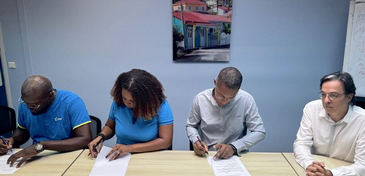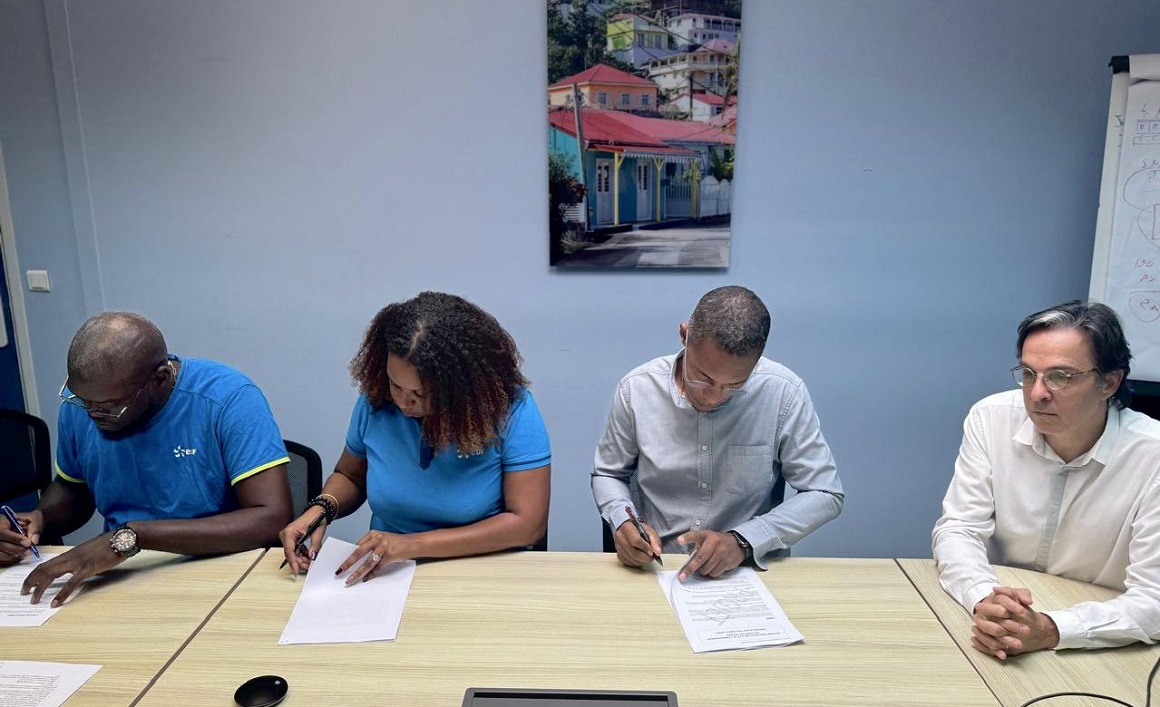 Jeudi 5 décembre, la Fédération énergie CGTG et la direction d’EDF PEI signent un protocole de fin de conflit. Photo : X Jimmy THELEMAQUE