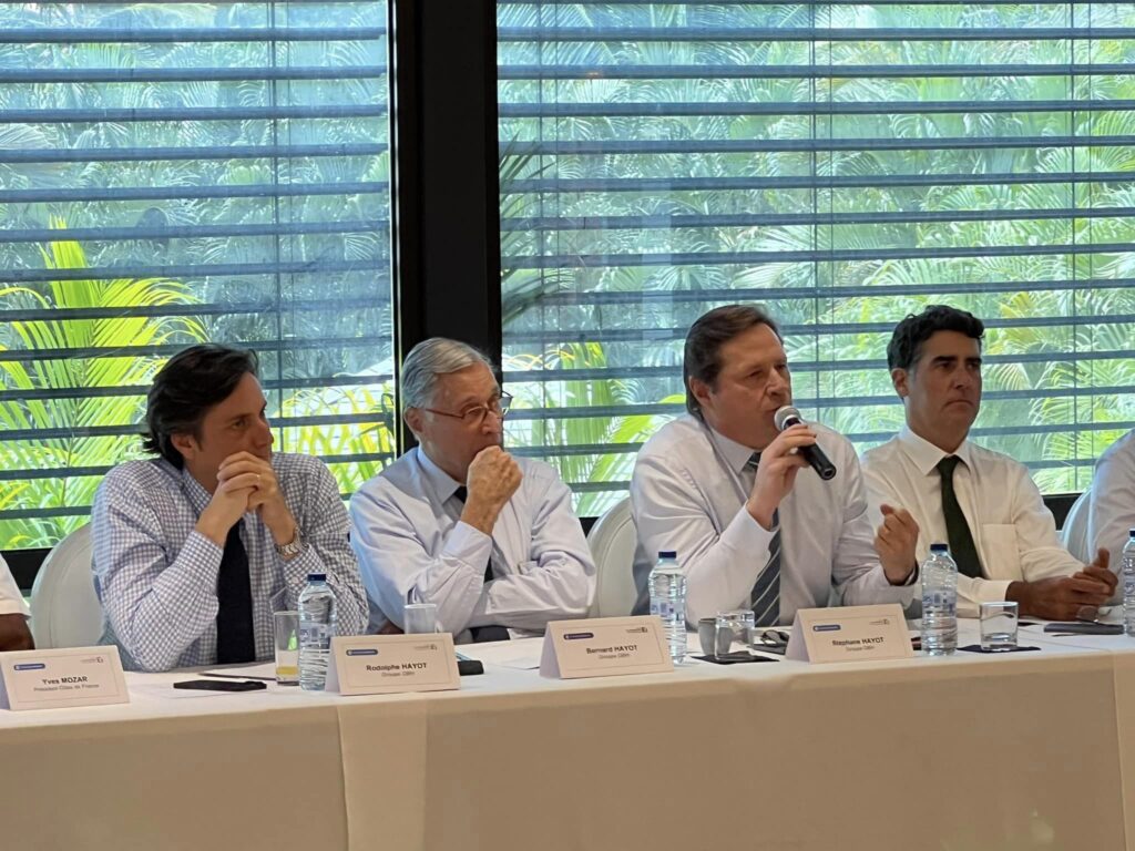 « Quelles sont les solutions pour accroître le développement économique et l’emploi ? » se sont demandé les participants à la table ronde organisée par la CCI et le Medef. Parmi les entrepreneurs présents, Patrick Vial-Collet président de la CCI, Bruno Blandin président du Medef, Bernard Hayot chef d’oligopole, Stéphane Hayot chef d’oligopole, Joaquim Gaddarkhan chef de grande entreprise, José Gaddarkhan président de la fédération du BTP, Patrick Sellin président de la Chambre d’agriculture.