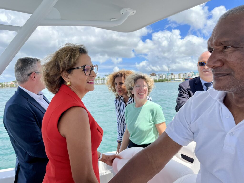 En matière économique, la vision et connaissance du territoire de la ministre ont été nourries et illustrées par deux rencontres publiques. Une réunion, tenue à l’hôtel 5 étoiles La Toubana, propriété de Patrick Vial-Collet qui est aussi président de la Chambre de commerce et d’industrie (CCI). Cette réunion organisée par la CCI et le syndicat patronal Medef, a rassemblé environ quarante personnes. La visite du Port autonome et la présentation du projet Hub Antilles que la ministre a qualifié de « projet structurant pour le territoire ».