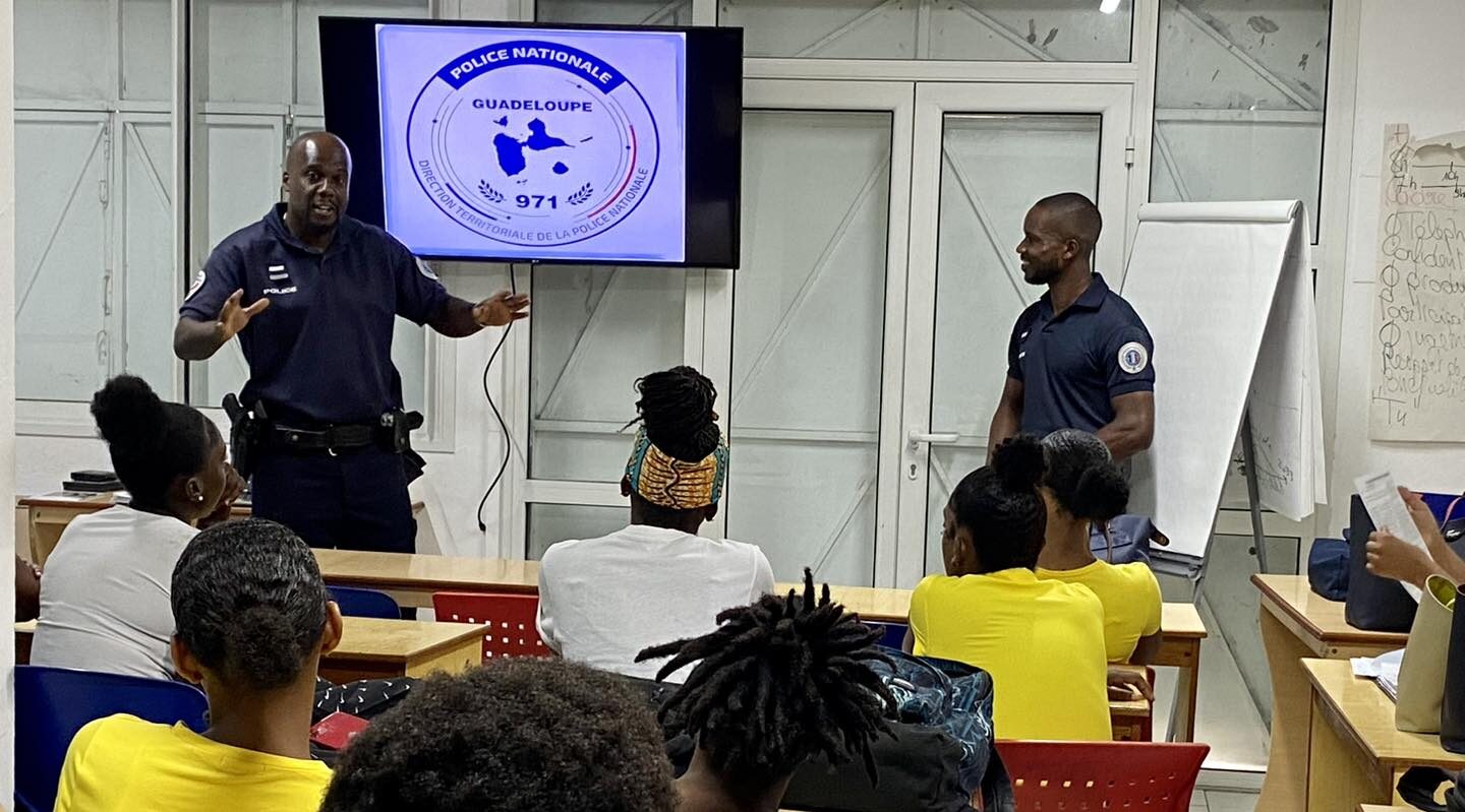 Deux agents de la police nationale participent à une matinée de sensibilisation auprès d’une douzaine de lycéens. L’intervention s’inscrit dans le cadre de deux journées portes ouvertes organisées par l’école de conduite Patrick aux Abymes du jeudi 7 au samedi 9 décembre.