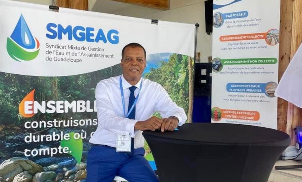 Ferdy Louisy, président du SMGEAG et maire de Goyave, le 7 novembre 2024 aux 4e assises Outre-mer de l’assainissement non collectif. Photo : FB SMGEAG