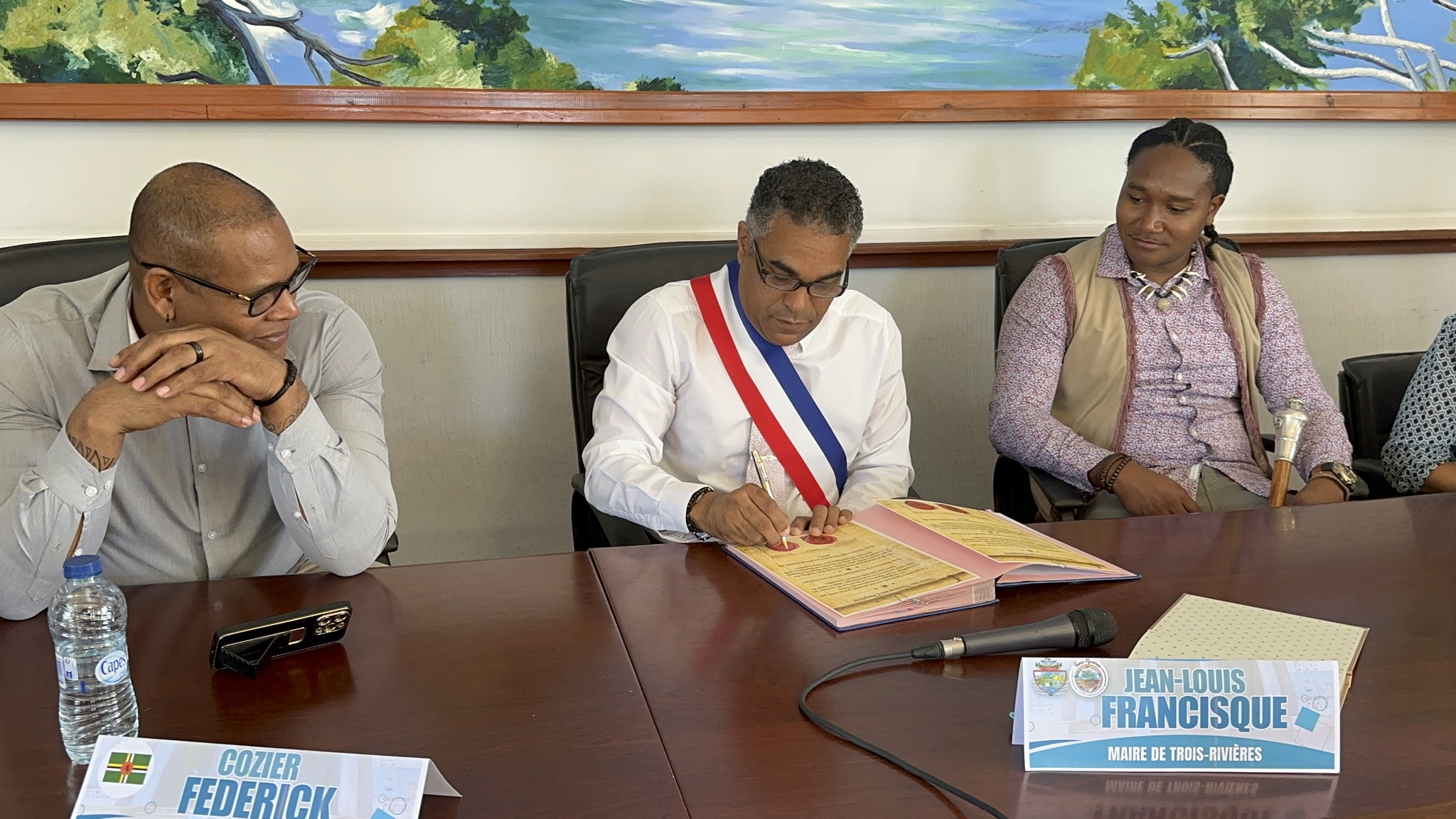 L’Hôtel de ville de Trois-Rivières a été le théâtre d’une nouvelle étape dans l’épopée kalinago ce samedi 27 janvier. Le maire Jean-Louis Francisque et son équipe municipale ont accueilli avec enthousiasme une délégation de la communauté amérindienne de la Dominique, menée par le chef Kalinago Ouboutou Lorenzo Sanford et Juliana Glasgow, présidente de l’association Kalinagwada.