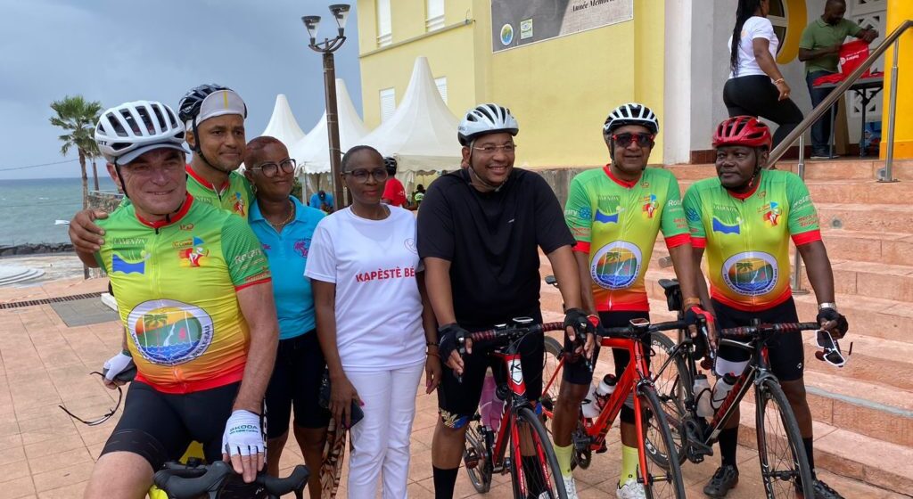 Sous le ciel bleu et ensoleillé de Capesterre Belle-Eau, seulement 80 cyclistes, âgés de 7 à 77 ans, ont pris le départ de la 1ère édition de la randonnée cycliste “La route du cœur” samedi 11 novembre à 9 heures. Le maire de la commune, Jean-Philippe Courtois, a enfourché son vélo aux côtés du parrain de l’événement, Bernard Hinault, quintuple vainqueur du Tour de France. Le circuit de 50 km comportait un fort dénivelé et une ascension en direction des célèbres chutes du Carbet. Peu après les cyclistes, 40 marcheurs ont entamé une randonnée pédestre de 10 km autour de Capesterre Belle-Eau, avec un dénivelé de 500 mètres. Parmi les randonneurs se trouvait une maman, sa poussette et son petit enfant.