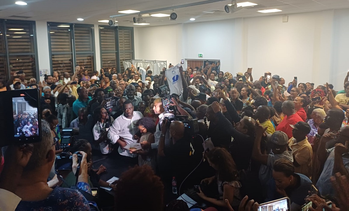 La lueur blanche de la salle de la médiathèque Paul-Mado (bureau centralisateur) a jeté une lumière crue sur les sentiments en cette soirée électorale. Sur le visage des uns, très nombreux, l’ivresse d’une victoire sans appel. Sur celui des autres, peu présents, l’hébétude de l’échec. Ary Chalus, lui, n’était pas là. Ni pour concéder, ni pour faire front. Le président de Région, qui menait tambour battant la liste « l’Alliance démocratique », avait choisi l’absence au soir du second tour des municipales dimanche 22 mars. Une disparition qui en dit long sur l’ampleur de la défaite : 4 021 voix, soit 34,04 % des suffrages, loin derrière Michel Mado (chemise blanche au centre photo ci-dessus), élu avec 6 476 voix et 54,83 % des suffrages.